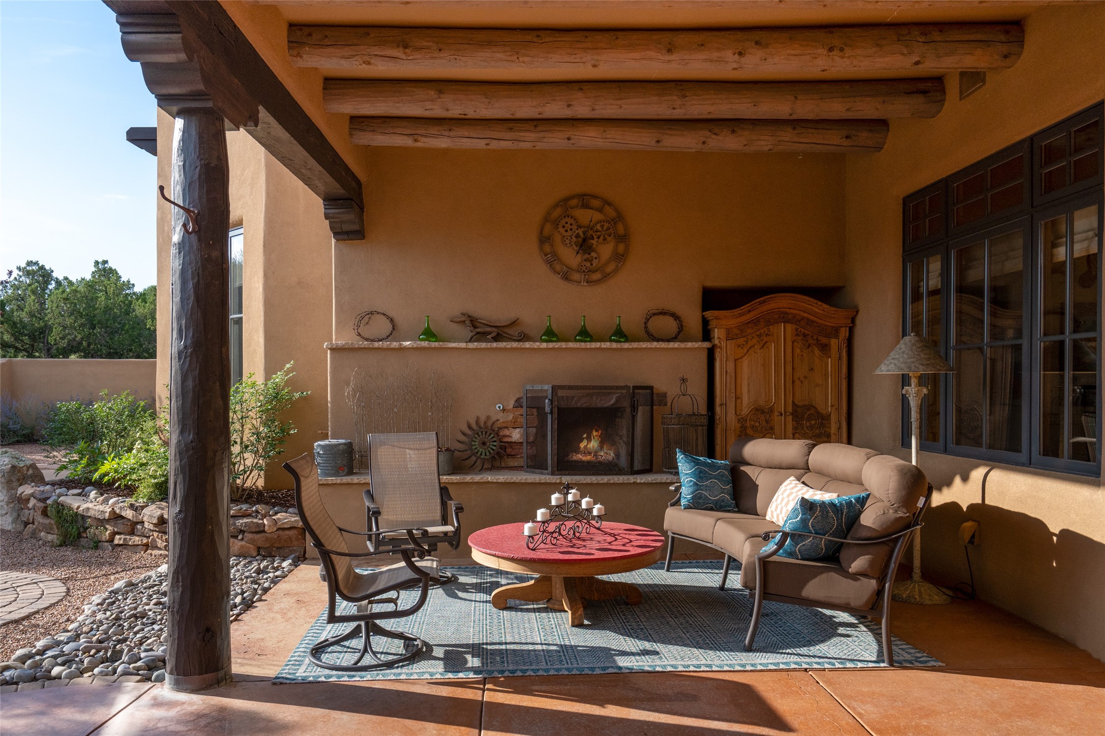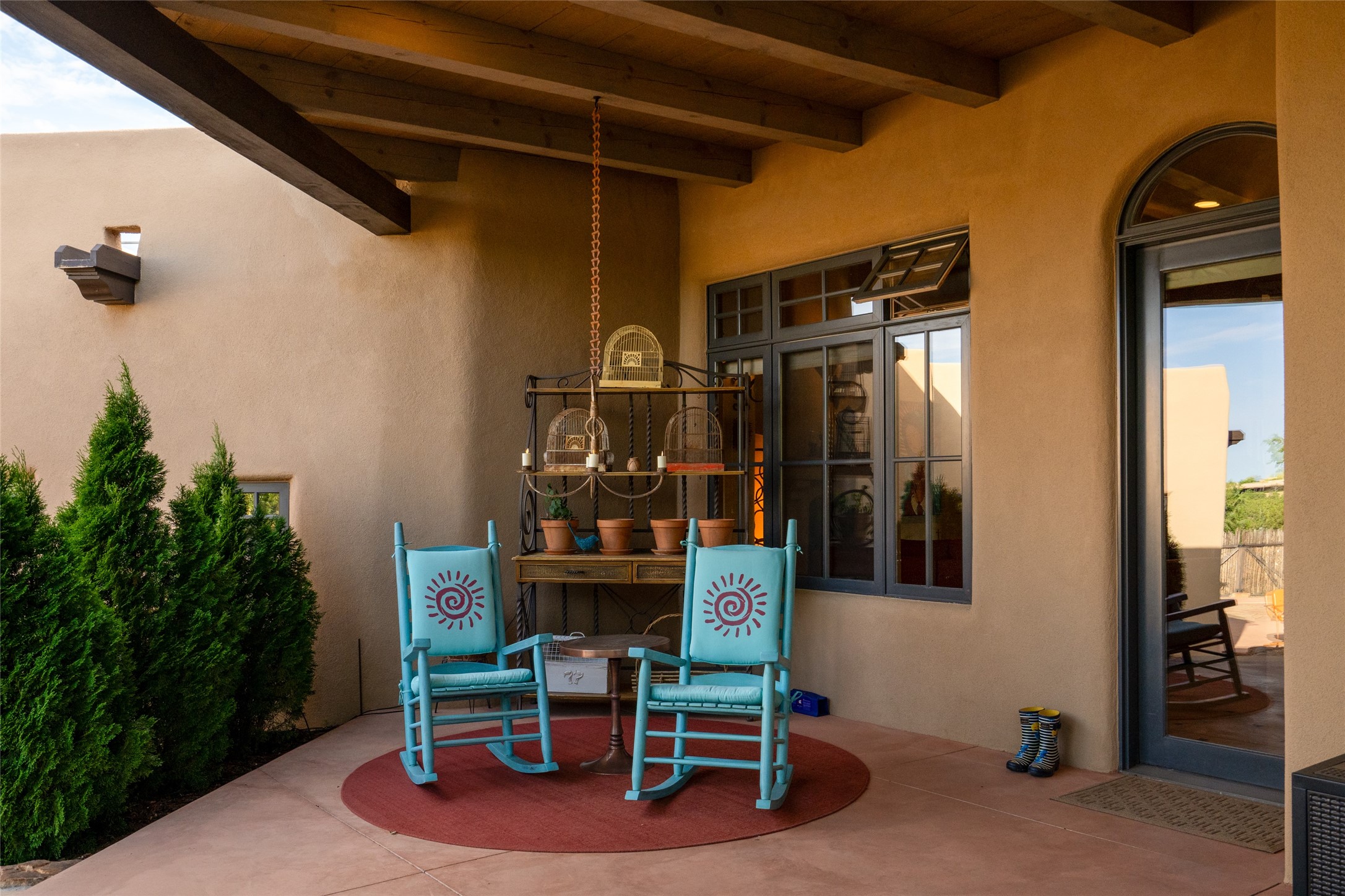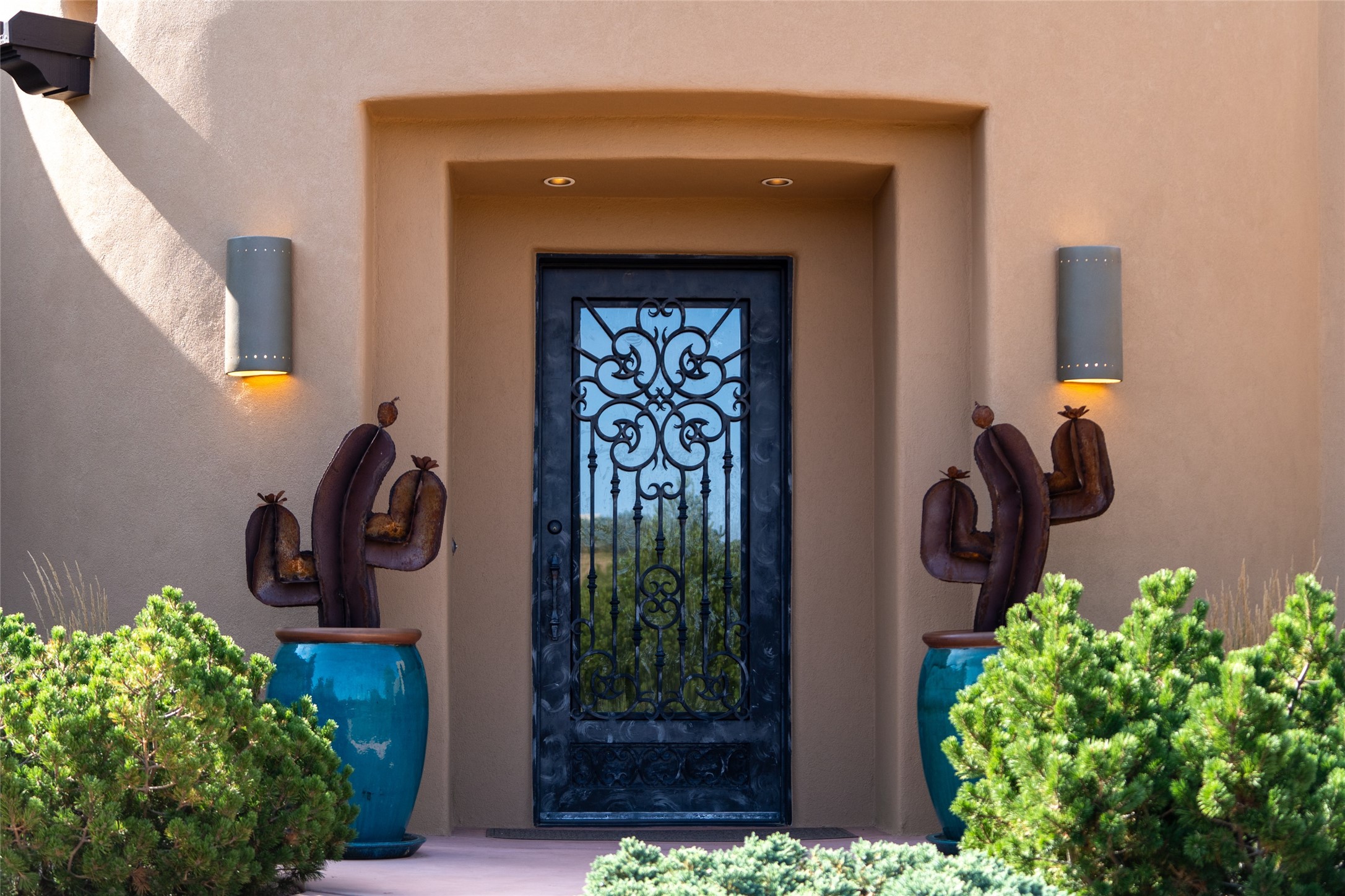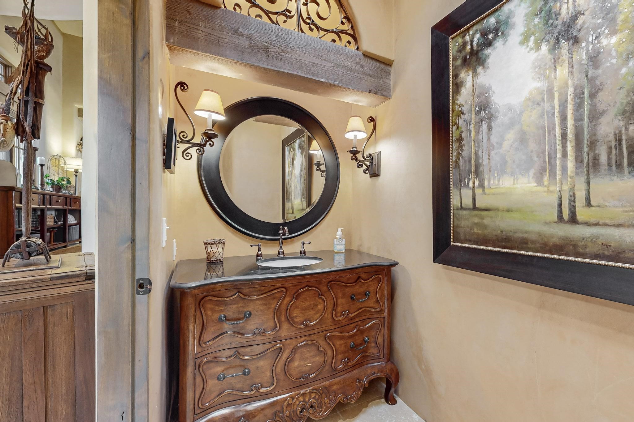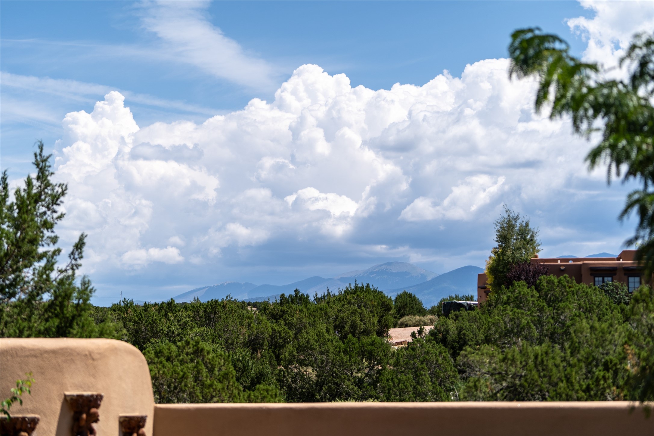 Discover the epitome of elegance and sophistication in this exquisite Sundance Estates single-level property crafted by an award-winning developer. This exceptional home, designed for grand entertaining and effortless living, features two ensuite bedrooms in the primary residence with an additional office. A separate 1-bedroom casita with a private entrance is perfect for guests, while an additional climate-controlled studio offers flex space for arts and crafts or an additional guest room. The heated 4-car garage includes two oversized bays with ample room for a workshop or home gym. Experience views of the Sangre de Cristo Mountains from various vantage points within and outside the home. This property exudes Santa Fe charm with high ceilings, vigas, and dramatic architectural details, all enhanced by luxury finishes throughout. The chef's kitchen is a culinary delight, equipped with high-end appliances designed for both function and style, along with the entertainment/breakfast bar. The separate wet bar in the dining area features a copper sink, wine cooler, and triple-filtered ice maker. The northeast-facing portal offers a serene outdoor living room and dining space, complete with a fireplace, fountain, and mountain views. The southwest-facing portal is connected to the kitchen and provides a perfect place for grilling out in the afternoon shade and enjoying a sunset amidst lush landscaping. The thoughtfully designed floor plan ensures privacy and spaciousness, with perfectly situated bedrooms at different ends of the home, including a primary suite with his and hers walk-in closets. Built with sustainable FASWALL building systems, this home combines environmental responsibility with luxury living. Meticulously maintained and lovingly cared for, this property offers the ultimate blend of sophistication, Santa Fe charm, and modern luxury. Schedule your private tour today and experience the quality and attention to detail this home offers.