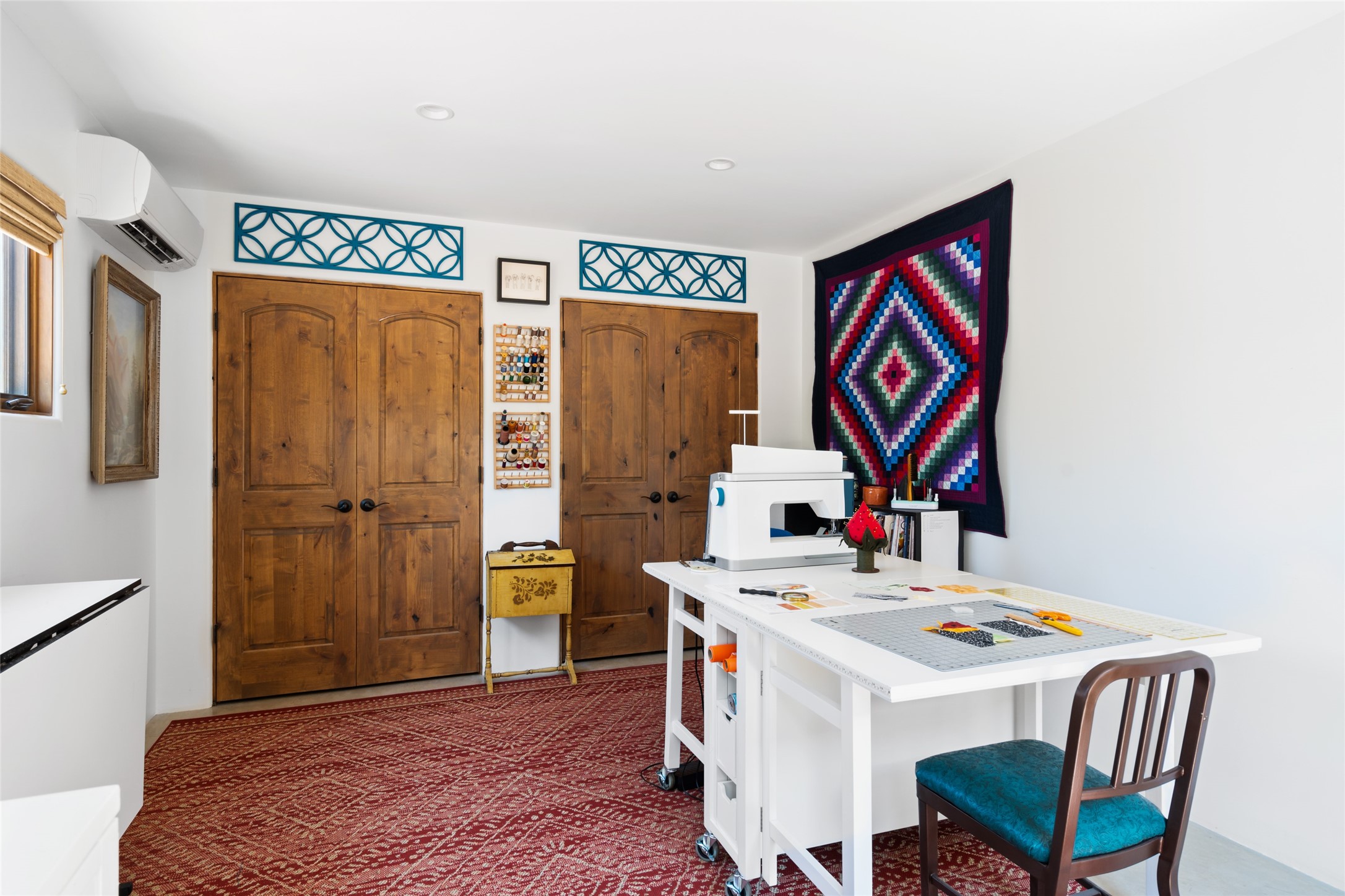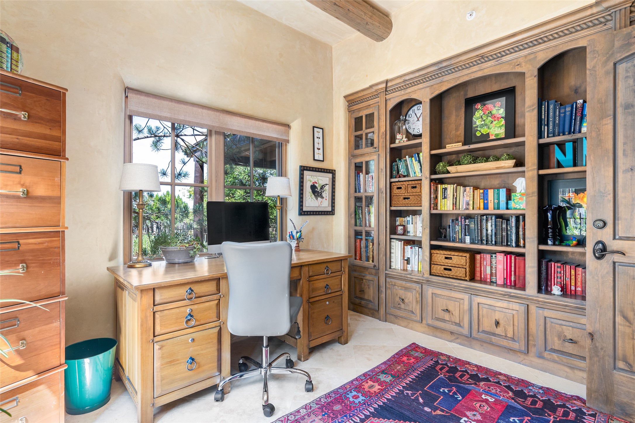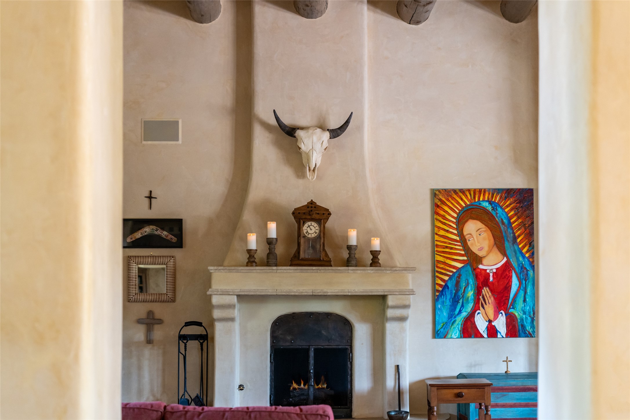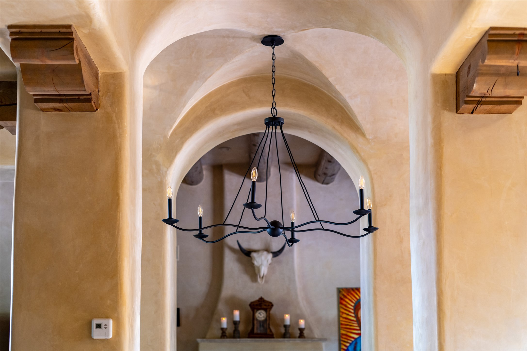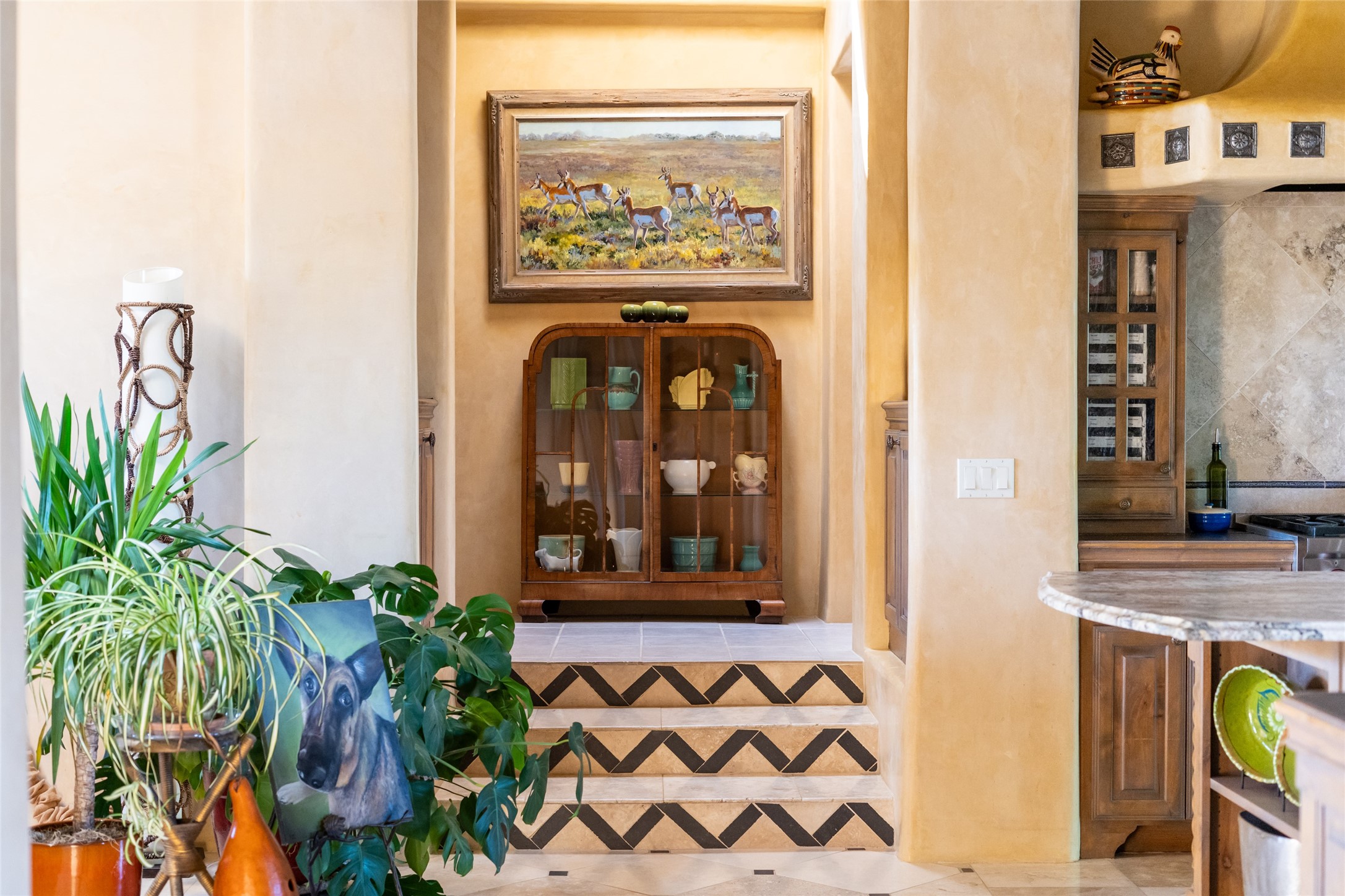 Discover the epitome of elegance and sophistication in this exquisite Sundance Estates single-level property crafted by an award-winning developer. This exceptional home, designed for grand entertaining and effortless living, features two ensuite bedrooms in the primary residence with an additional office. A separate 1-bedroom casita with a private entrance is perfect for guests, while an additional climate-controlled studio offers flex space for arts and crafts or an additional guest room. The heated 4-car garage includes two oversized bays with ample room for a workshop or home gym. Experience views of the Sangre de Cristo Mountains from various vantage points within and outside the home. This property exudes Santa Fe charm with high ceilings, vigas, and dramatic architectural details, all enhanced by luxury finishes throughout. The chef's kitchen is a culinary delight, equipped with high-end appliances designed for both function and style, along with the entertainment/breakfast bar. The separate wet bar in the dining area features a copper sink, wine cooler, and triple-filtered ice maker. The northeast-facing portal offers a serene outdoor living room and dining space, complete with a fireplace, fountain, and mountain views. The southwest-facing portal is connected to the kitchen and provides a perfect place for grilling out in the afternoon shade and enjoying a sunset amidst lush landscaping. The thoughtfully designed floor plan ensures privacy and spaciousness, with perfectly situated bedrooms at different ends of the home, including a primary suite with his and hers walk-in closets. Built with sustainable FASWALL building systems, this home combines environmental responsibility with luxury living. Meticulously maintained and lovingly cared for, this property offers the ultimate blend of sophistication, Santa Fe charm, and modern luxury. Schedule your private tour today and experience the quality and attention to detail this home offers.